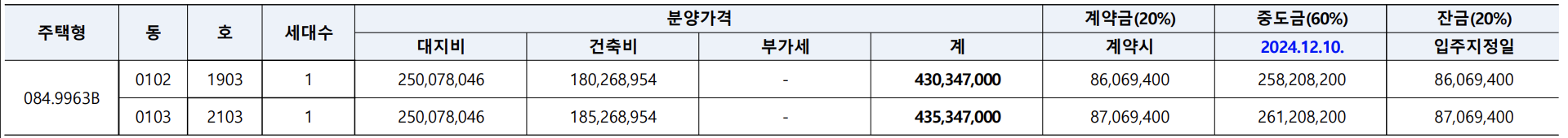 - 84㎡ B타입 / 102동 2103호 / 총 4.3 억 원