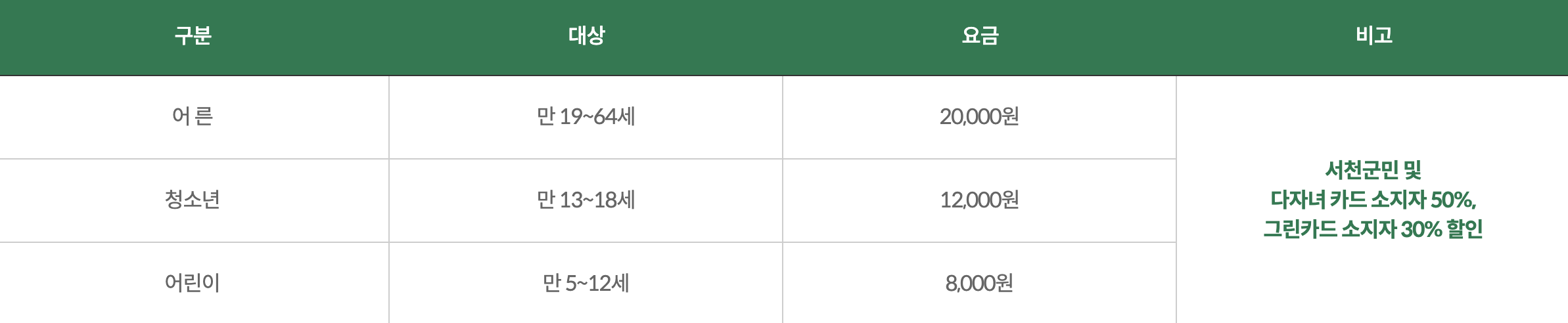 - 그린카드 소지자 (본인에 한함)