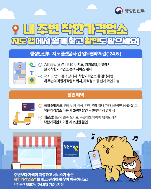 ✔️ 7월 29일(월) 부터 네이버지도,카카오맵,티맵에서 전국 착한가격업소 검색 서비스 개시