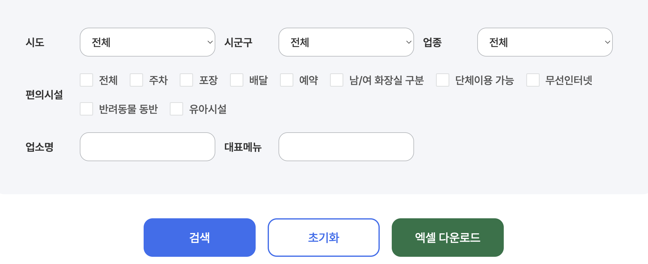 🔎행정안전부 착한가격업소 홈페이지에서 바로 확인이 가능하며, 지역을 선택하고 업종과 가격대를 선택한 후에 검색버튼을 누르기만 하면 됩니다. 꼭 내주변이 아니더라도 여행시 방문하는 지역의 착한가격업소를 찾아보는 것도 하나의 방법입니다.