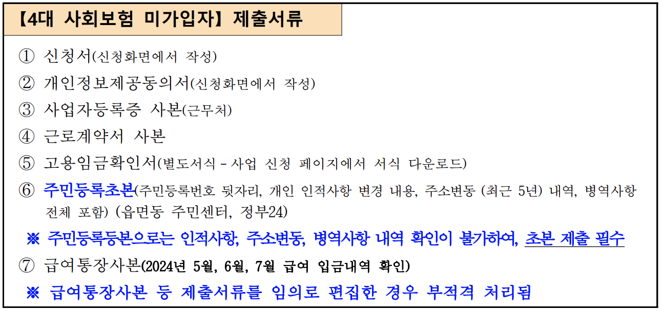 - 제출서류는 접수기준일(24.08. 01.) 이후 발급된 서류만 인정