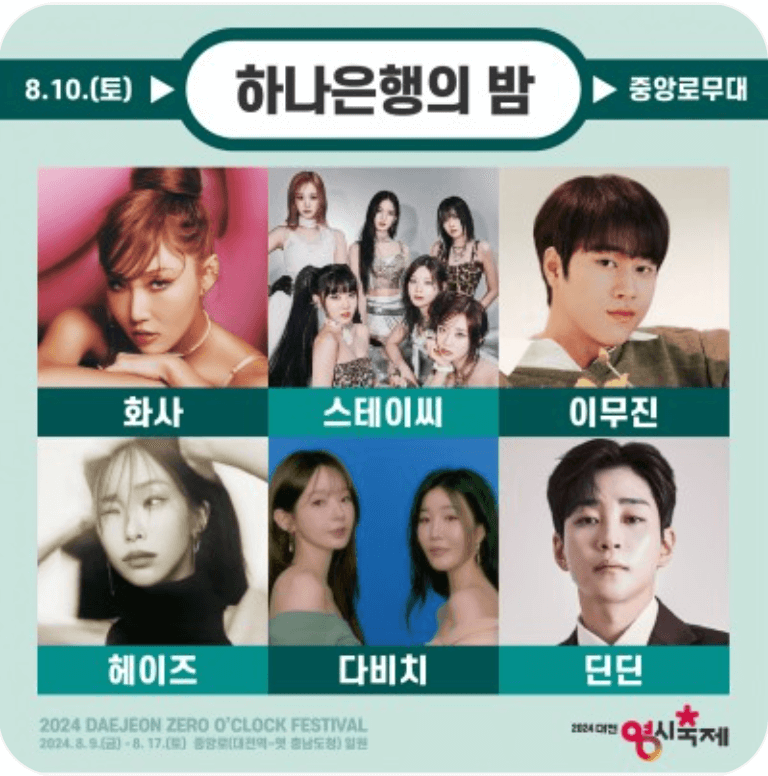 2024 대전 0시 축제를 화려하게 빛내줄 초대가수 라인업이 공개되었습니다.
