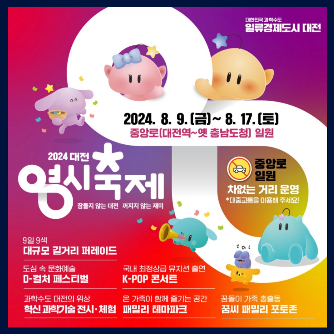 - 축제 기간 : 2024. 08. 09.(금) ~ 08. 17.(토) 9일간