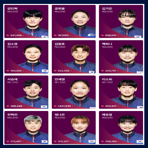 전혁진, 안세영, 김가은, 서승재/채유정, 김원호/정나은