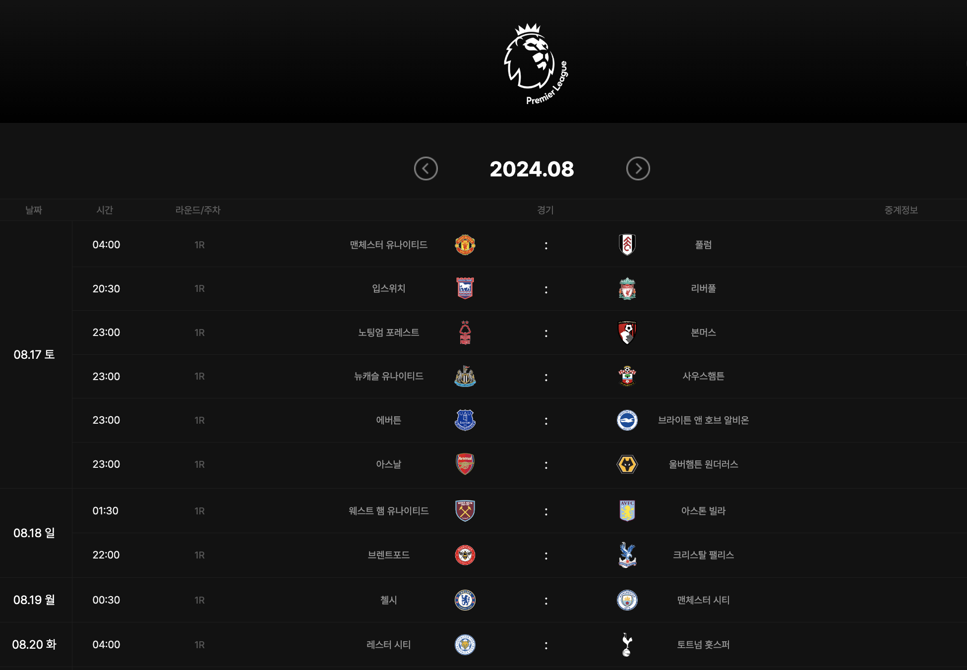 2024-25 시즌 프리미어리그 개막전 일정 개요